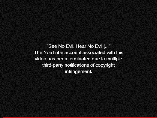 Well well well suddenly the See No Evil Hear No Evil video is gone from YouTube…?
